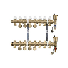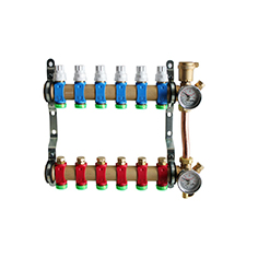 分水器是地暖系統(tǒng)中,用于連接各路加熱管供、回水的配、集水裝置。在地暖系統(tǒng)中主要負(fù)責(zé)地暖環(huán)路中水流量的開啟和關(guān)閉,并將水均衡分配到環(huán)路中,經(jīng)過熱交換后返回到集水回主杠,再由回水口流入的供熱系統(tǒng)中。